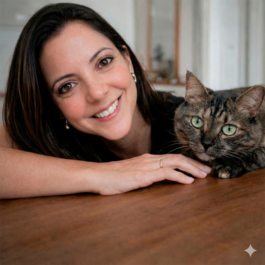 Olá, sou Renata Pires, Publicitária por formação, pós-graduada em Gestão de Pessoas, Auxiliar Veterinária e Cat Sitter por amor.